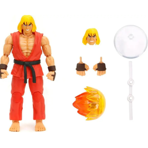 Get ready for the ultimate showdown in a world where street fighting is the main event. Revisit the world of your favorite characters from the Street Fighter II video game, now as 1:12 scale action figures by Jada Toys. The honorable fighter Ken is known for testing his limits when it comes to fighting. Equipped with alternate hands, head, and a fireball accessory for his fists of fury. This 6″ figure comes in arcade style packaging with features inspired from the game. Be careful not to get caught on the opposite side of Ken’s right hook.